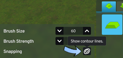 Holding down the tool and wiggling your cursor around will smooth the land more and more. Having the contour lines showing is the best way to see all this in action and you’ll get the hang of when to apply which strength and for how long.