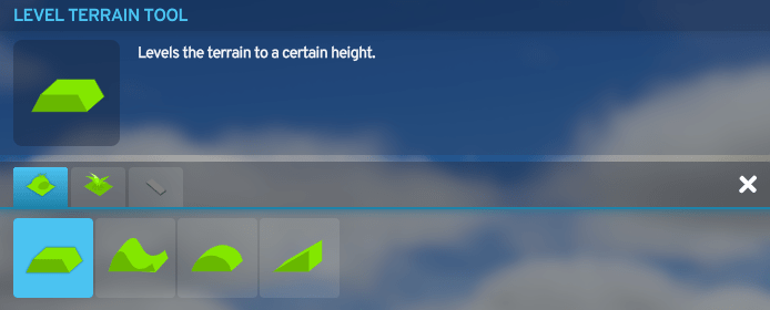 No matter the size or strength used, this tool will never move land beyond the height you set. You can left-click repeatedly to achieve the effect but it’s most common to hold down left-click and move your cursor as needed to cover all the land you’re wanting to change.