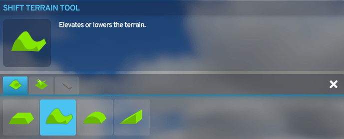 The shift terrain tool allows you to raise or lower the land freehandedly.