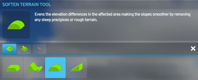 The soften terrain tool allows you to smooth edges or rough terrain.