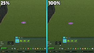 This is a comparison of the brush strength set at 25% on the left and 100% on the right, both elevating the land to and from the same heights.