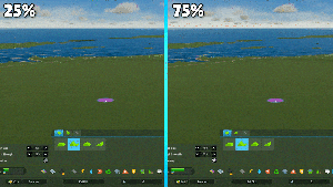 This is a comparison of the brush strength set at 25% on the left and 75% on the right, both softening the same edge of land and both using left-click.