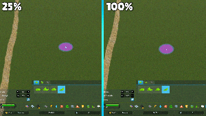 This is a comparison of the brush strength set at 25% on the left and 75% on the right, both elevating the land from the same height.